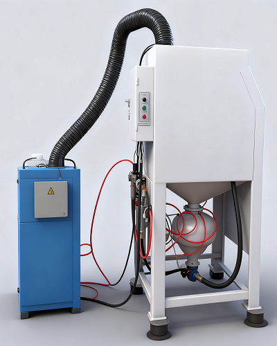 1 配备了高效除尘器,工作舱为负压工作状态,粉尘不外泄,极大地改善了粉尘对环境的污染和对工人健康的危害。